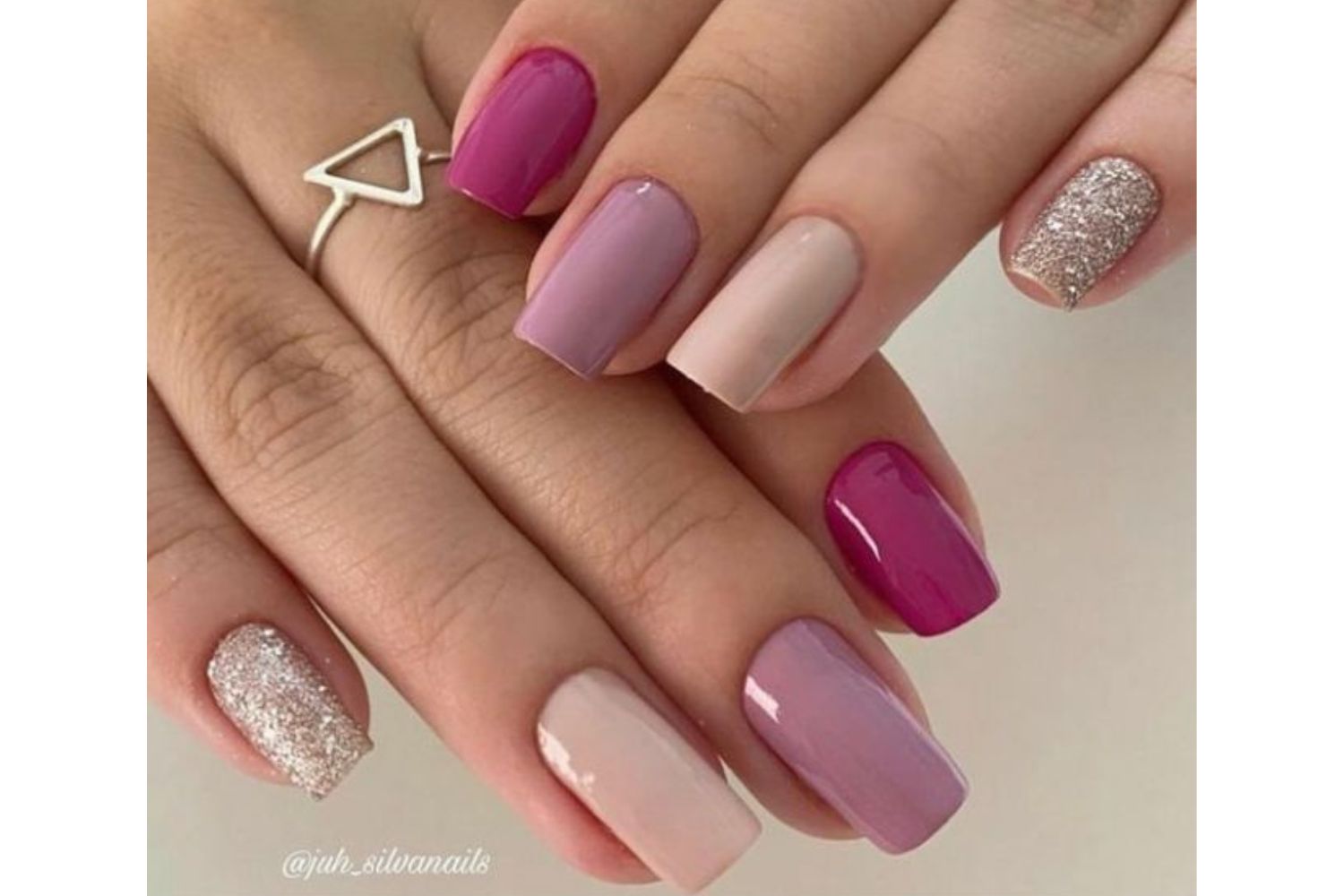 Para as que tem dificuldades em escolher o tom de rosa que mais gostam, que tal uma nail art onde você pode usar um tom em cada unha?