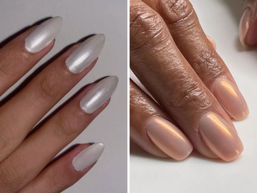 Além disso, o acabamento perolado preenche a lacuna para quem quer algo mais brilhante do que o esmalte normal, mas não tão deslumbrante quanto os resultados do pó cromado.