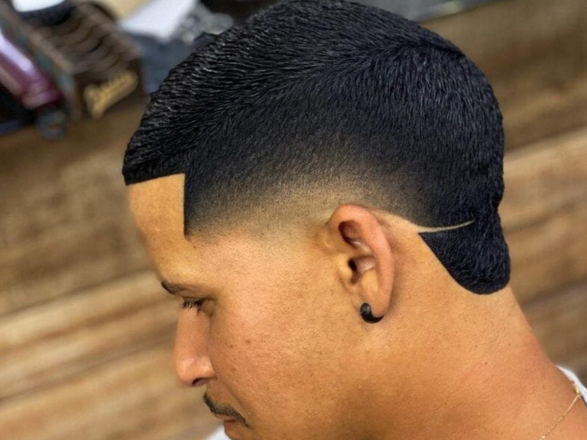 Bastante conhecido no Tik Tok, a opção traz as laterais bem raspadas, contudo os fios do topo bem bagunçados e despojados, trazendo volume as madeixas.