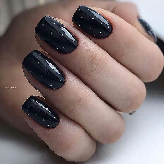 Se você prefere um estilo mais delicado, mas sem perder a sofisticação, pode apostar nas bolinhas ou desenhos em preto. Esses detalhes criam um contraste interessante com a base da unha e podem variar entre formas geométricas e traços, deixando suas unhas com um toque divertido e criativo. A combinação de preto com desenhos pequenos e discretos dá um ar romântico e moderno.