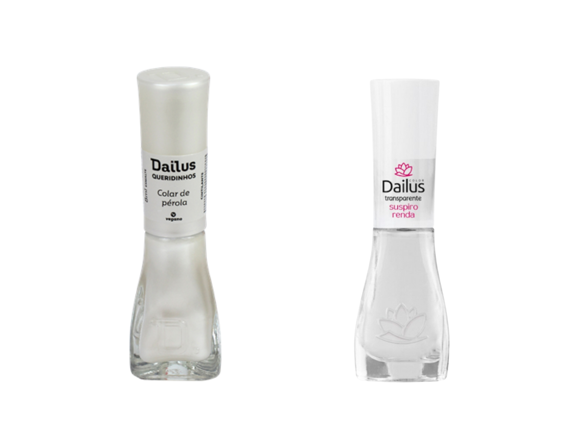 Segundo a especialista, você pode usar uma camada de cada ou se preferir aquela francesinha bem branquinha, vale apostar em uma camada do perolado com duas do branco transparente.