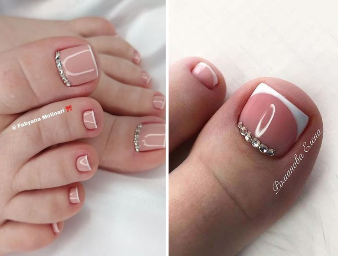 Embelezar o pé com a unha francesinha com pedrinhas está entre as ótimas formas de trazer para si um visual autêntico e romântico. A adesão do detalhe faz toda a diferença, bem como realça ainda mais a nail art clássica feminina;