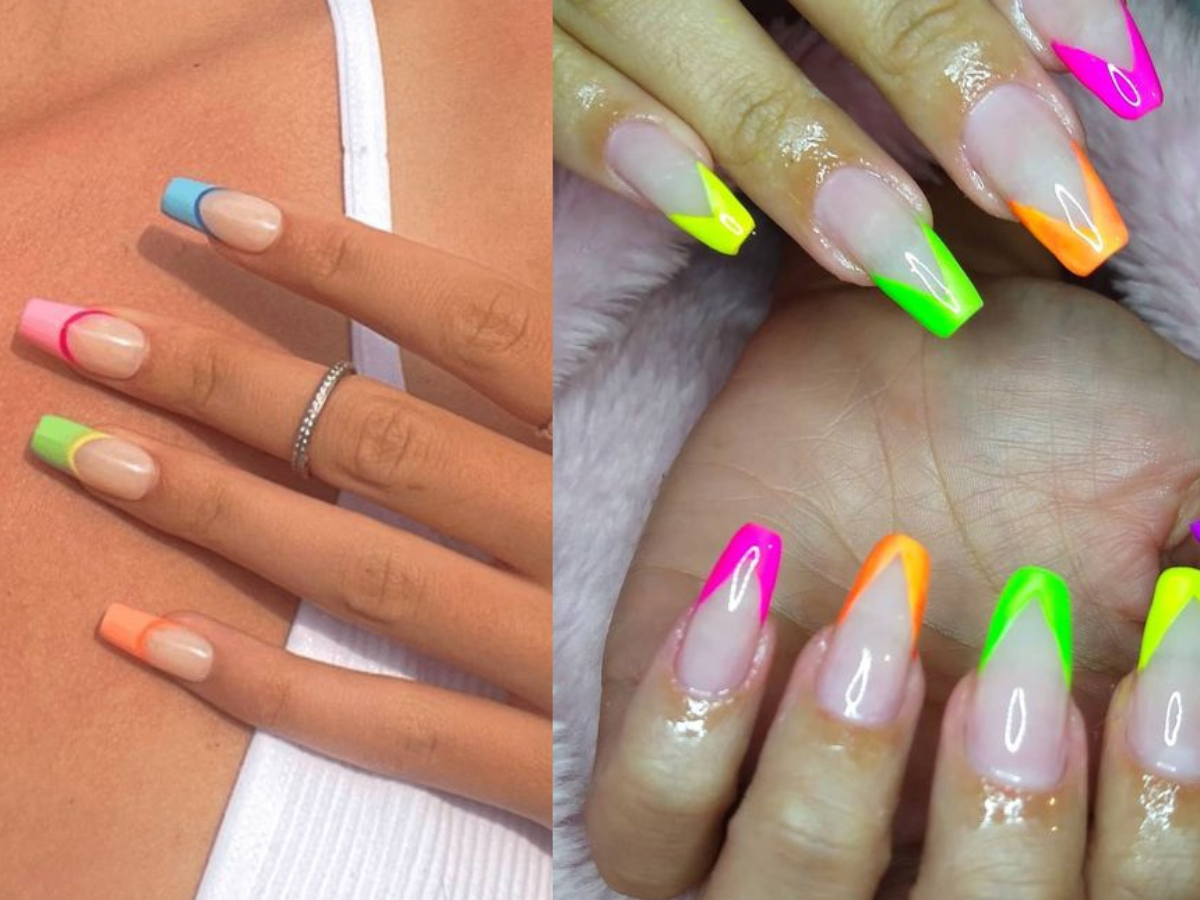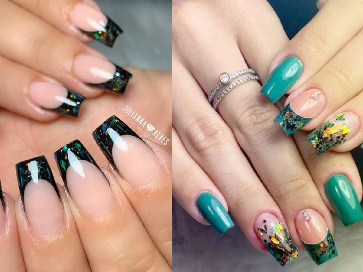 A nail art trabalha toda a base da unha, de modo que um acabamento mais amendoado aconteça. Além disso, as unhas são pintadas de uma cor clara e as pontas pintadas com uma cor mais escura, o que traz um visual único e moderno.