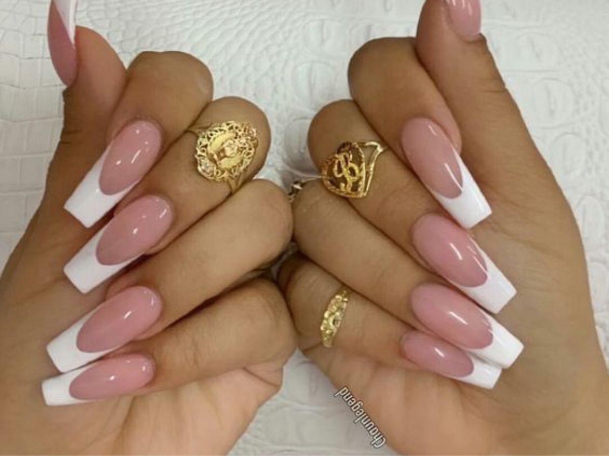 - Escolha uma base clara para a unha e uma ponta mais escura e grossa do que a tradicional. De preferência deixe a ponta em formato de C, bem como as laterais amendoadas;