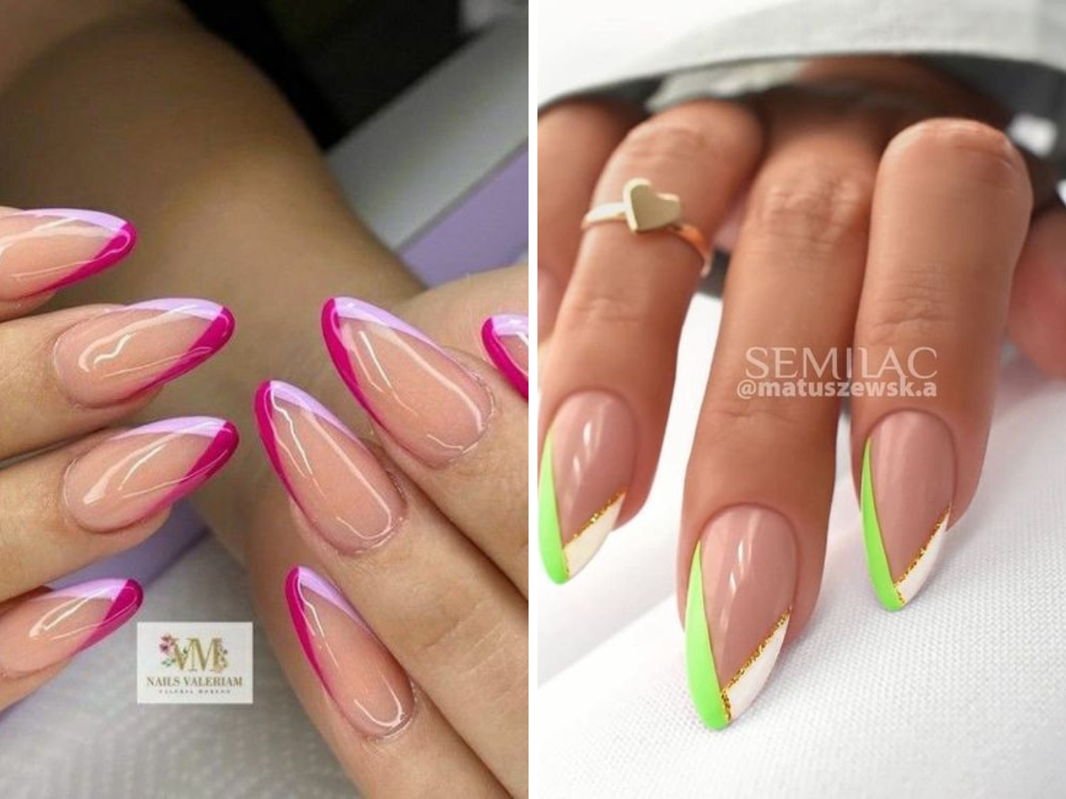 Assim como o preto, outras cores também combinam bem com a unha francesinha triangular. Assim aposte em algo mais colorido ou com cor que você goste.