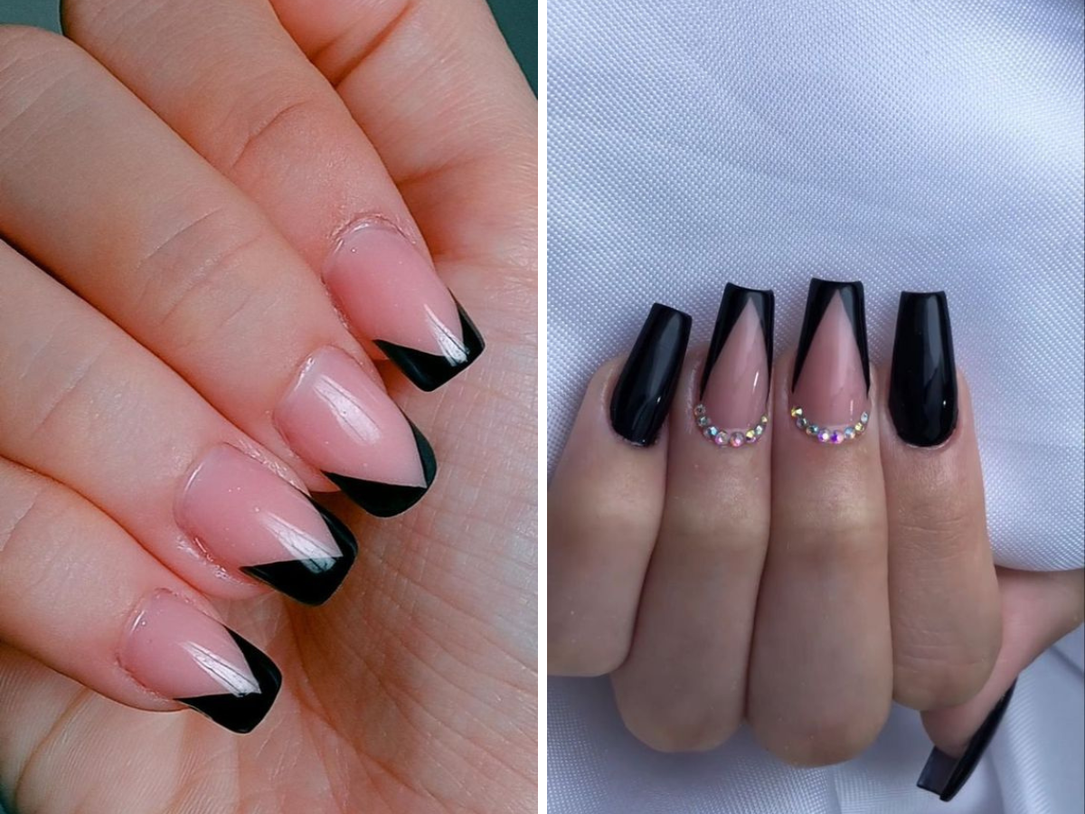 A nail art aqui pode trazer francesinhas pretas bem marcadas. Se você preferir uma nail art mais delicada, também pode escolher um triangulo mais fininho e sofisticado.