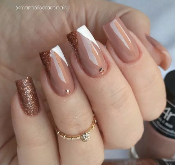 3. Café com leite e detalhes brilhosos garantem seu espaço nas unhas decoradas de outono