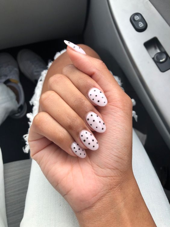 5. Por fim, aposte em pontos para um visual divertido e descontraído nas unhas brancas delicadas