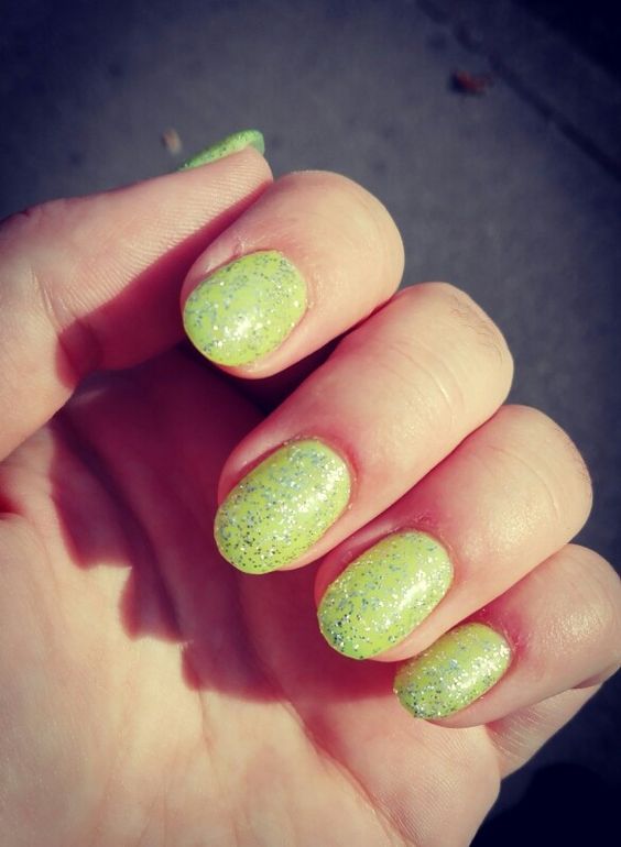 Com glitter – cor e esmalte desconhecidos (Pinterest)