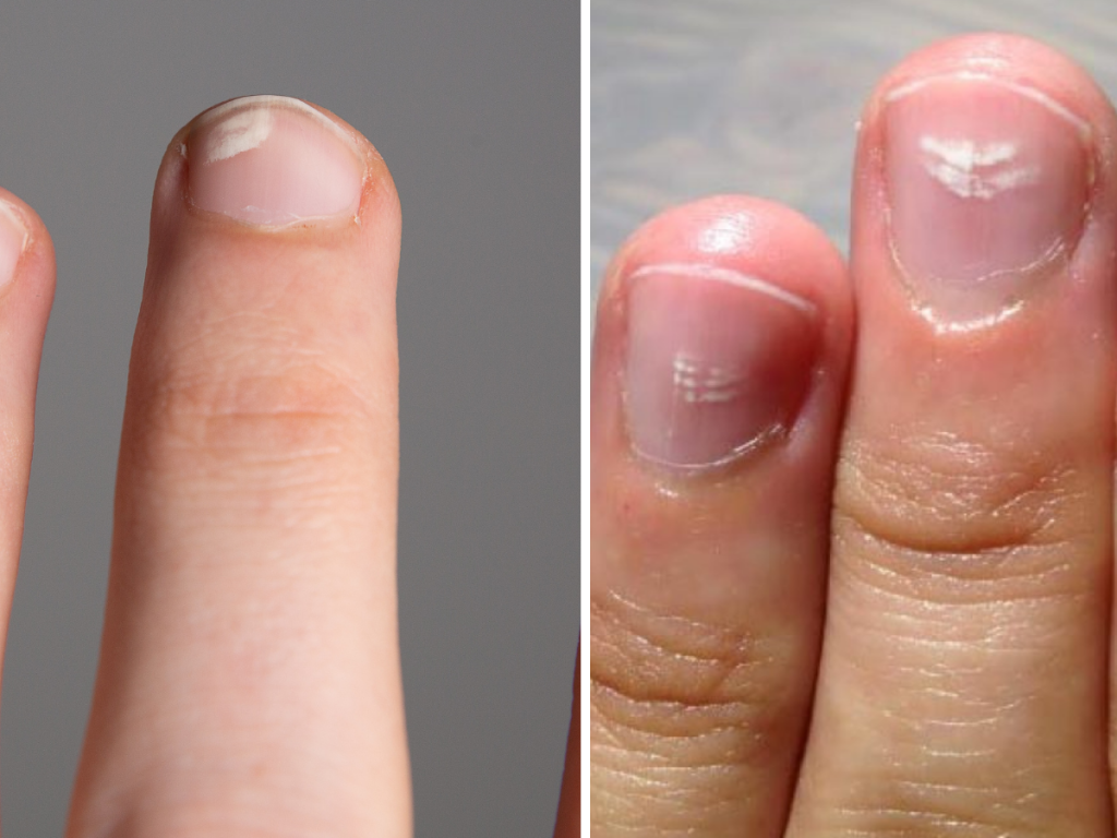Chamada de leuconíquia, a condição traz manchas esbranquiçadas no tecido, bem como listras bem marcadas com a mesma cor.