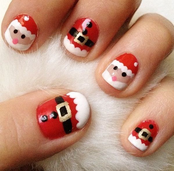 1. Papai Noel é um clássico das unhas de natal no modelo infantil