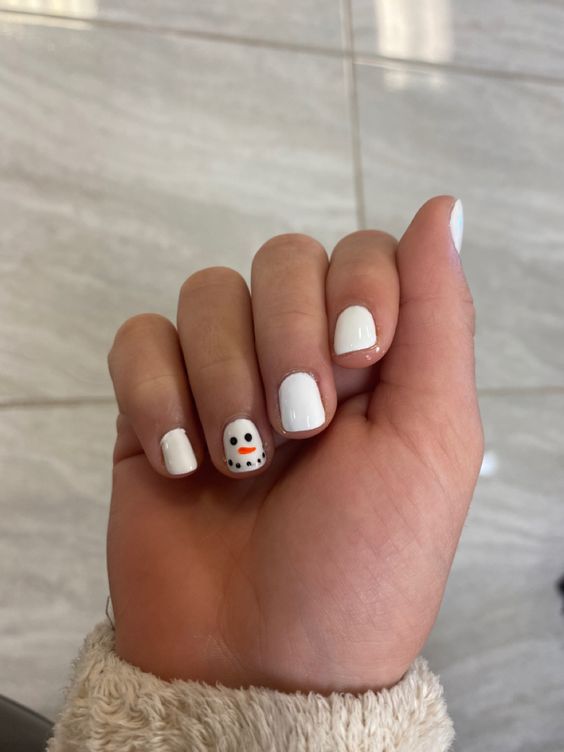 Para um visual mais minimalista, também vale apostar no boneco de neve para investir sobre a unha. Aqui escolha apenas uma das unhas e o restante totalmente de esmalte branco e terá um visual incrível.