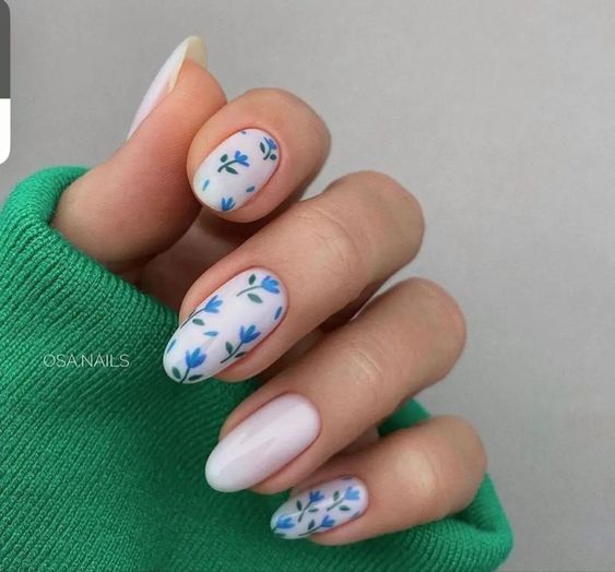 Flores também são ótimas opções para se investir quando se fala em unhas leitosas. Aqui você pode escolher tanto flores brancas como coloridas. A combinação fica incrível.