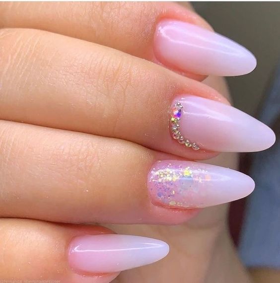 Uma combinação bem interessante envolve pedrarias, brilho e o branco leitoso. A nail fica super charmosa.