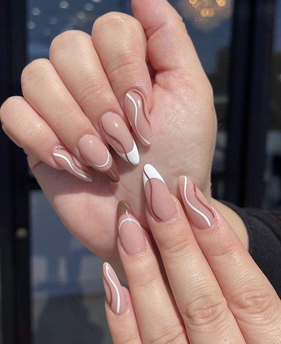 Caso busque uma unha mais moderna, saiba que nada impede que você invista em desenhos pela unha para destacar ambas as colorações. Aqui você pode criar uma base em nude e trazer detalhes em branco. O encontro é perfeito.