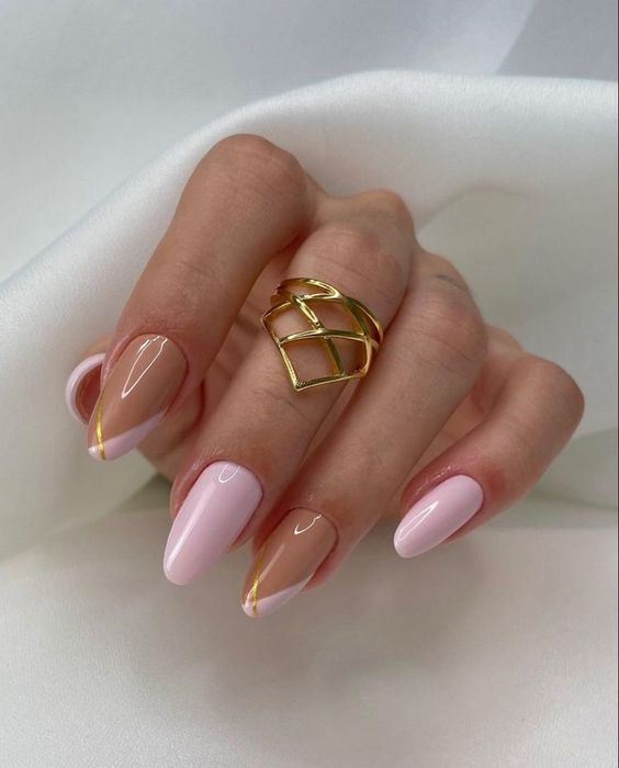 2. Assim como o branco, quem também encaixa bem nas unhas de Reveillon são rosas com detalhes em nude