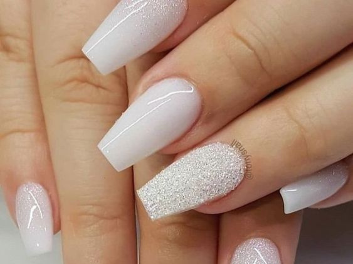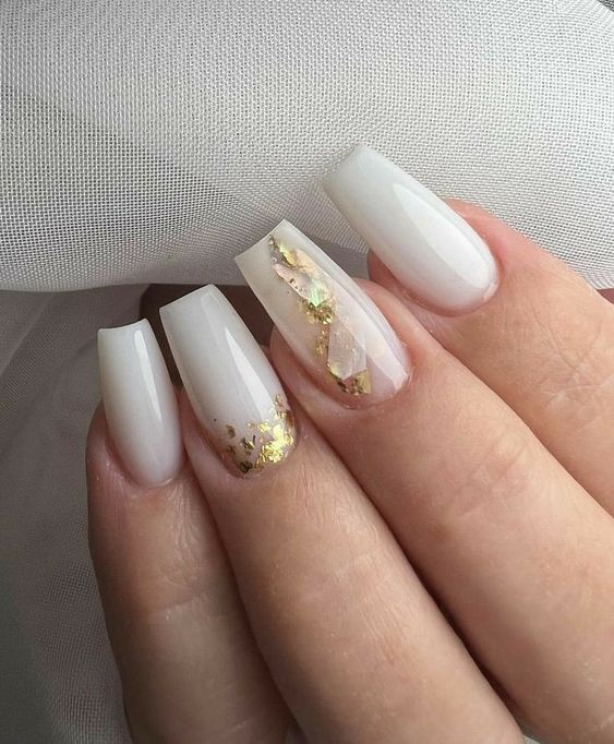1. Branco com detalhes encapsulados em dourado trazem unhas de respeito para quem deseja um modelo clarinho