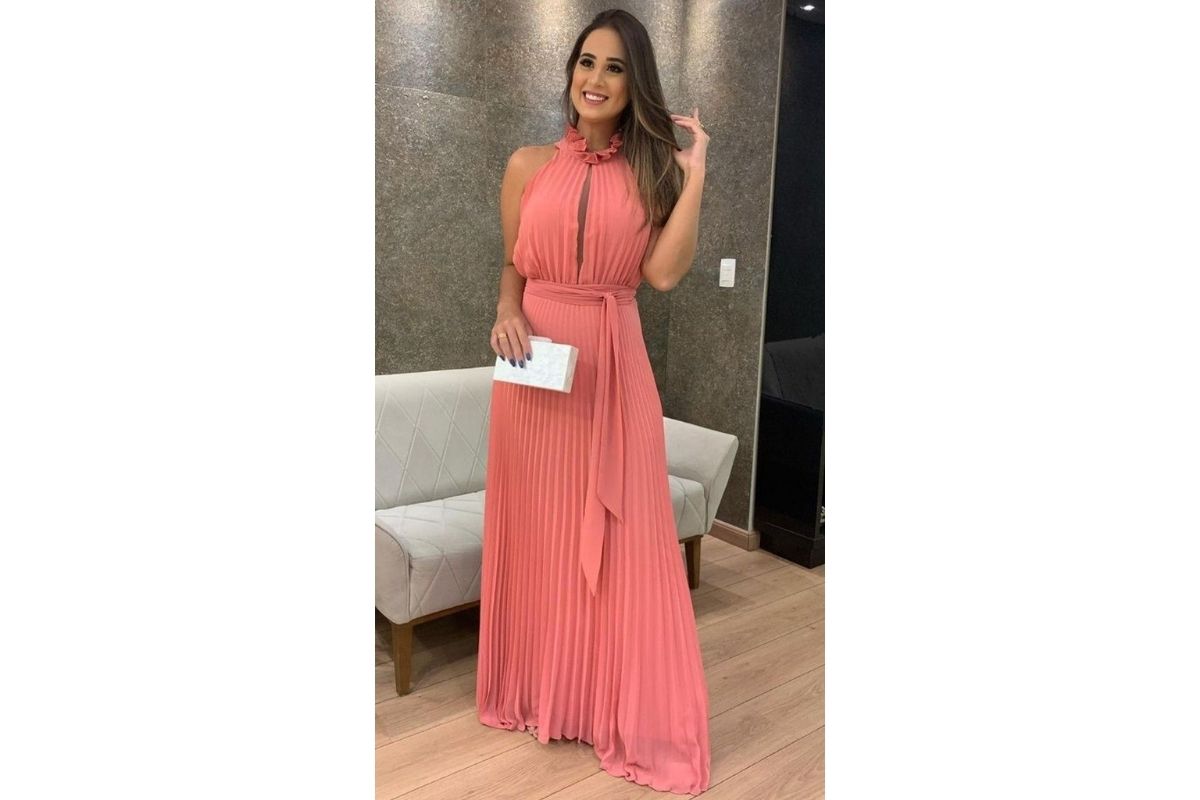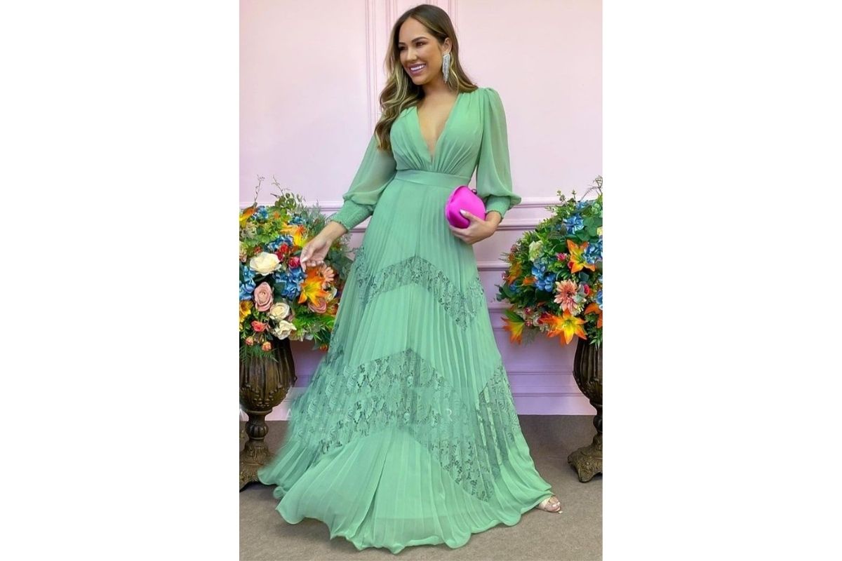 Por fim, se você busca um toque encantador, os vestidos com saia plissada ainda estarão muito em alta nos looks de mãe de noiva em 2024.