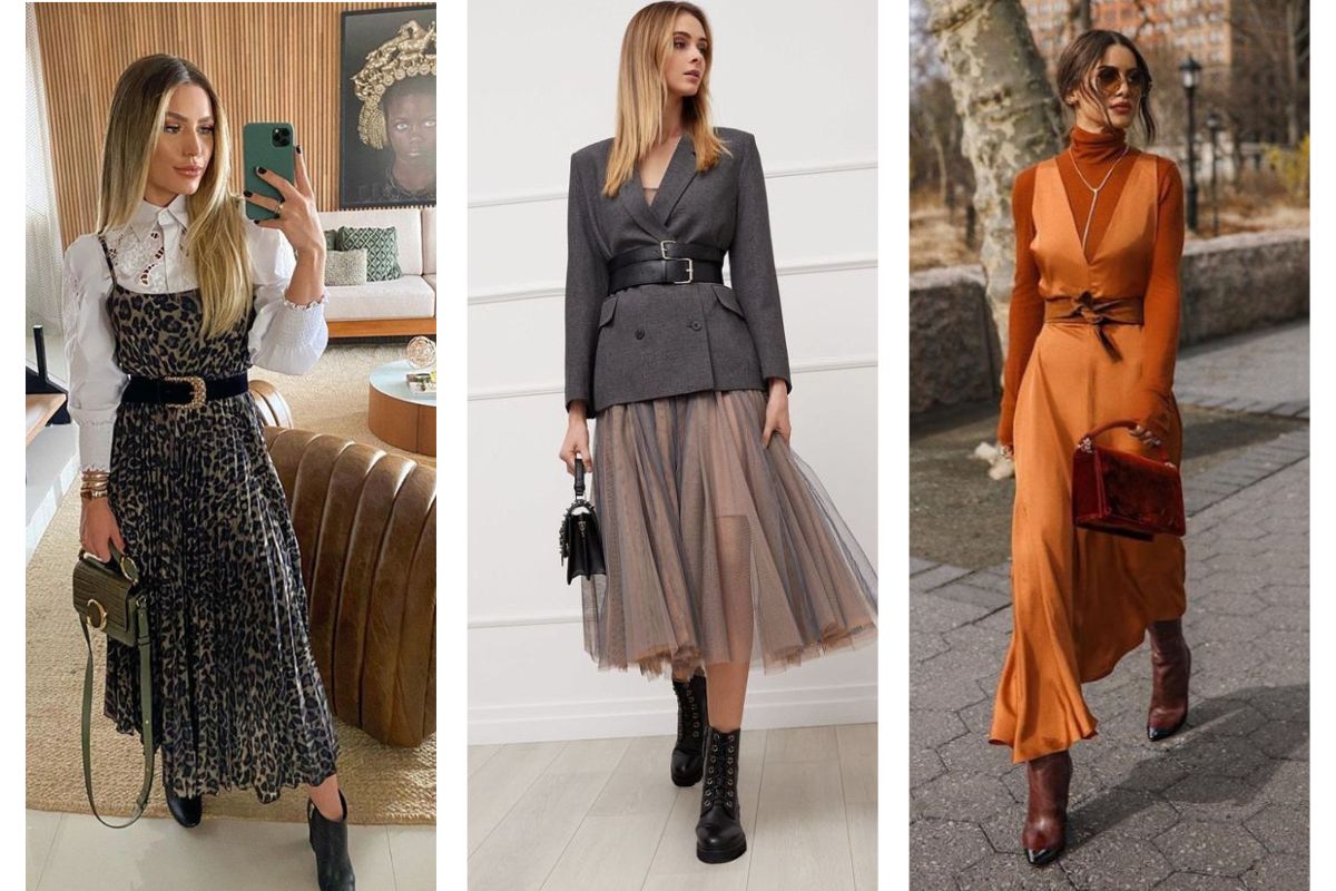 Dos tecidos mais leves aos mais pesados, vestidos midi ficam lindos em produções de outono, podendo ser usados de várias formas.